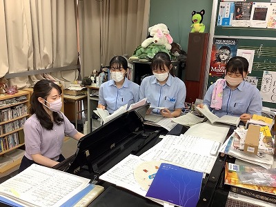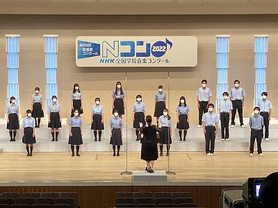 今年度は、音楽部の正部員が少なく、Nコンに出場できるか不安でしたが、後期課程生の臨時部員がたくさん集まり、無事出場することができました。部活動を兼部している生徒が多いので、なかなか全員集まって練習することが難しかったですが、課題曲・自由曲とも満足いく演奏ができました。