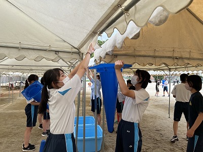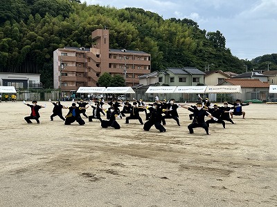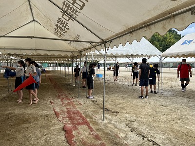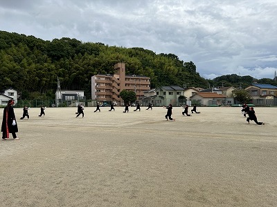 また、グラウンドで応援のリハーサルを行い、立ち位置や移動などの最終確認をしました。