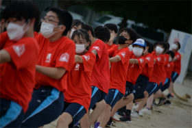 各グループの応援合戦も、新型コロナ感染症対策や熱中症対策のため、練習期間など大幅に制限される中、それにめげることなく常に前を向き続けて頑張ってきた成果を見事な演舞で披露していました。
