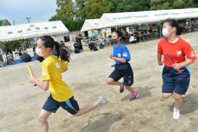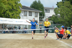 様々な種目の中、同じチームカラーで競い合った「全員リレー」では、走るのが得意でない生徒を周りの生徒が応援しながらもバトンパスで差を縮めたり、生徒数のそろわないチームは1人が複数回激走したり、思わず身を乗り出して応援してしまいました。その他の競技でも、勝ち負けはあるものの、お互い和気あいあいとチームやクラスメートの応援に精を出し、夏の終わりを飾るにふさわしいスポーツフェスティバルだったと思います。