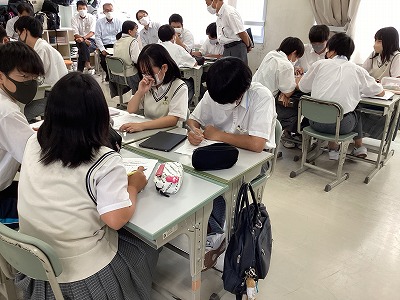 10月4日に3SS組で道徳の研究授業が実施されました。内容は、一週間後にある修学旅行での集団生活について考えるものでした。京都での自主研修の際にお互いが気を付けるべきことは何か、グループワークを通して生徒たちは考えました。