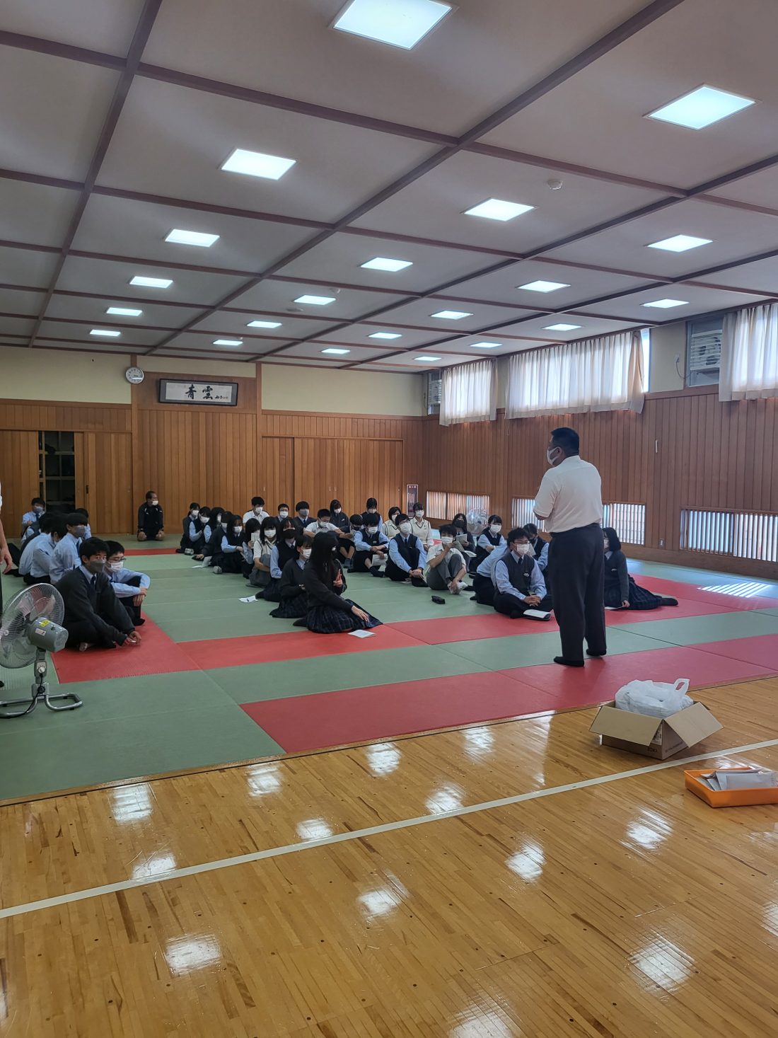 三年生は明日から修学旅行に行きます。今日は前日の結団式で明日からの注意事項などの説明を受けました。