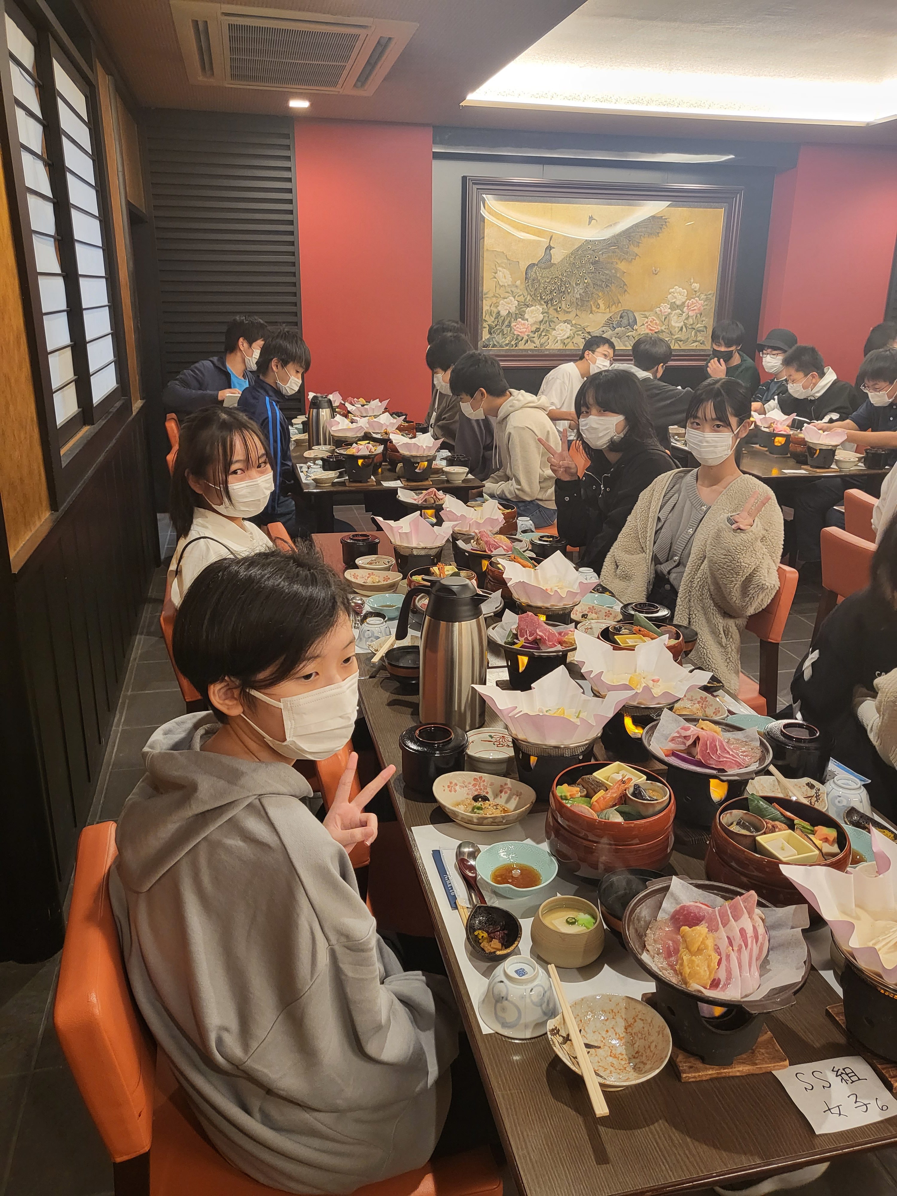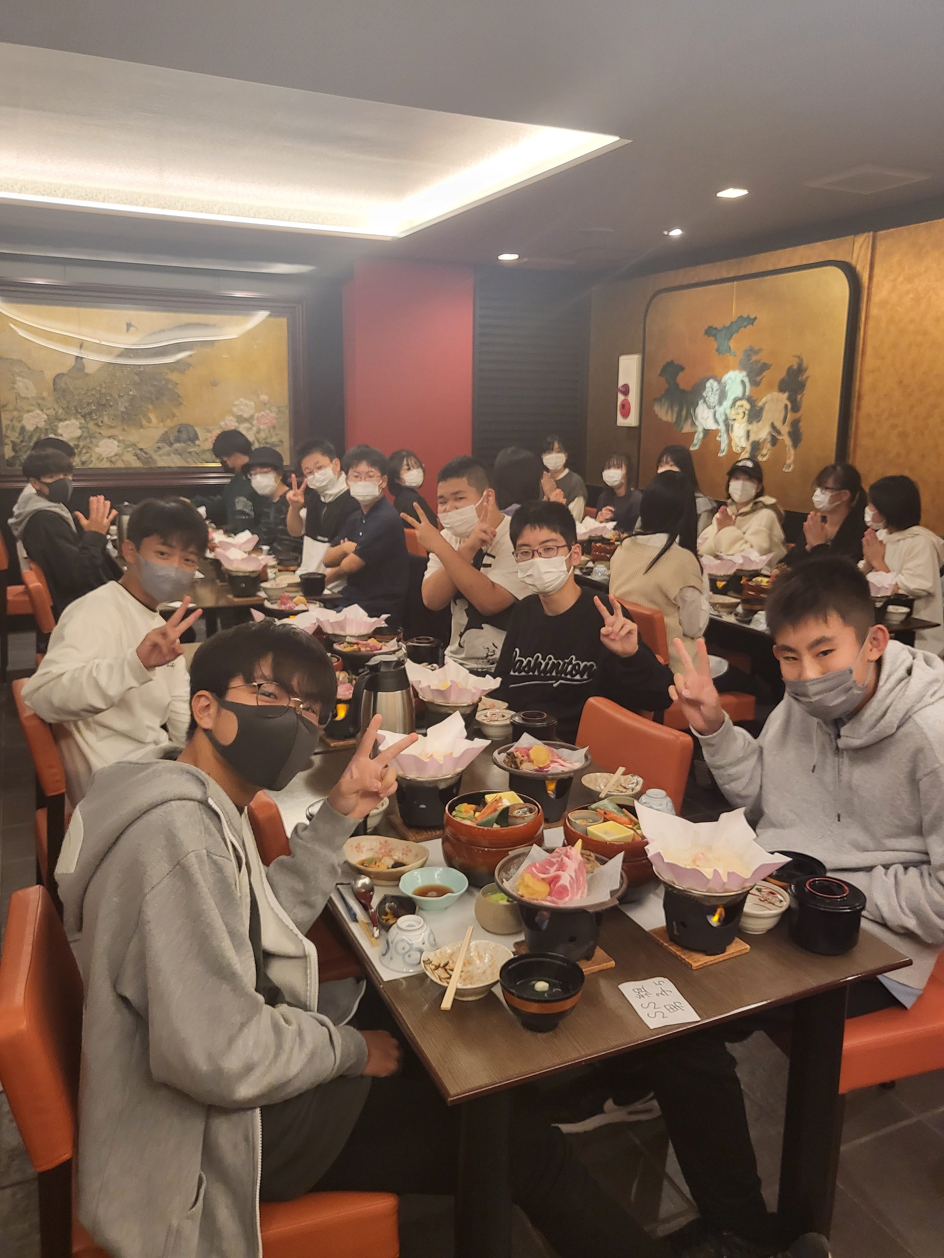 無事に京都に着きました。晩ごはんは豪華な京料理をみんなで堪能しました。