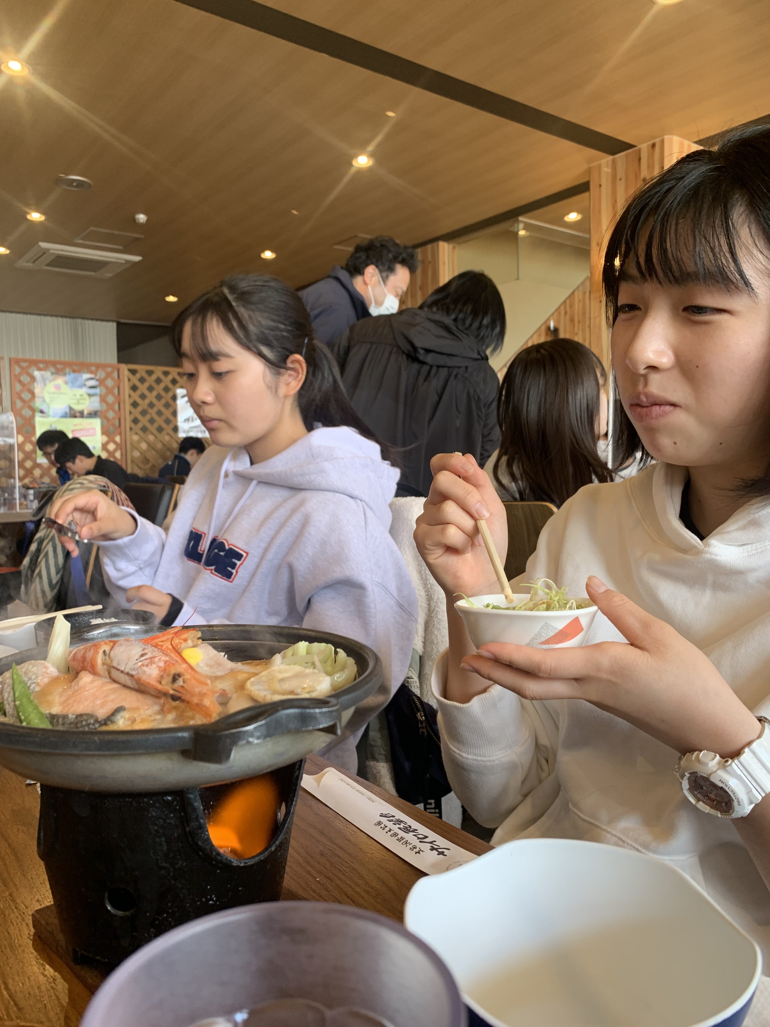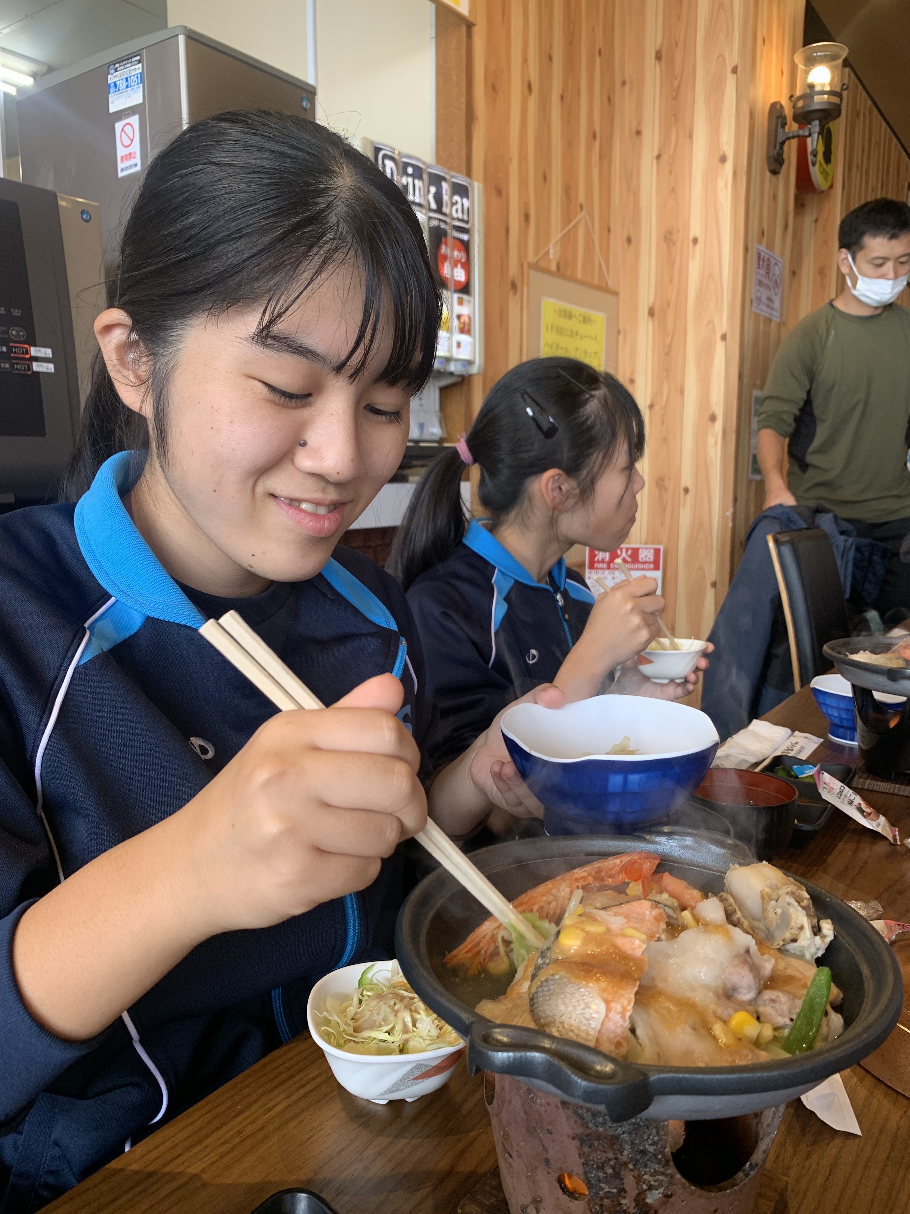 その後、お昼ご飯は鮭ちゃんちゃん味噌煮込みです。