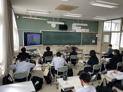 先週、前期課程生を対象として人権教育講演会がありました。感染状況を踏まえて,リモートでの講演会でしたが,机があった分,しっかりメモもとって聞けてかえって記憶に残ったようです。