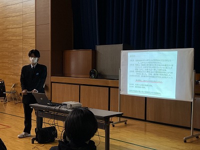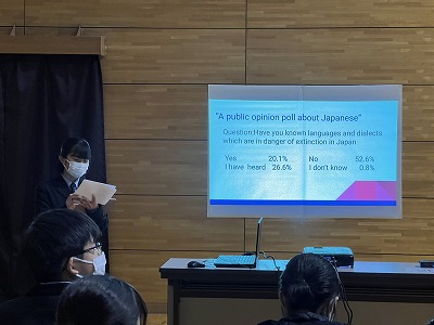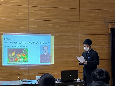 先日、4年生から2年間研究をした夢ラボの研究発表会が行われました。コロナの影響で、フィールドワークが行えなかったものの、アンケートや実験を行った結果をスライドにまとめ、発表しました。今年度の新たな取り組みとして、GLコースの生徒は、英語で発表しました。研究テーマは、様々で「失われた炭酸の復元」「住みやすい町づくり」「方言と地域性」「葉緑体の可能性」「素材から見る住宅事情」「法律や冤罪の背景について」「割りばしについて」などがありました。一人ひとりの成長が感じられる発表会になりました。大学に入学してより専門的な研究に発展するのが楽しみです。