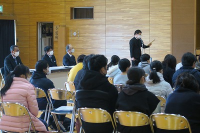 昨日の2月4日土曜日、立春とはいえまだまだ寒さも厳しい中、「新田青雲中等教育学校令和5年度入学予定者説明会」が本校体育館にて行われました。