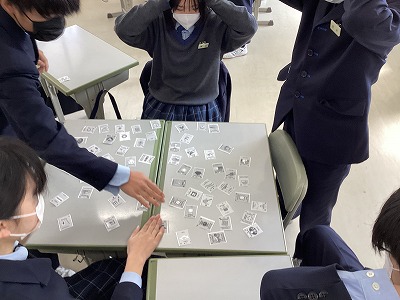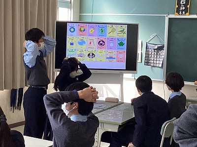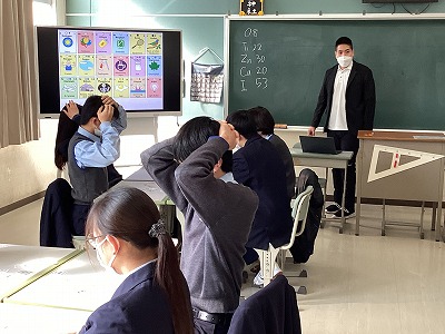 キース先生お手製のかるたを使って、これまで授業で使ってきた元素記号の復習です。日本語読みとは全く違う英語の発音に驚きながらも、キース先生との授業を楽しみました。