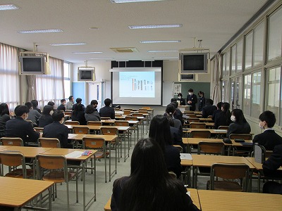 3年生は、先週から2週にわたって夢ラボの時間に研究発表会を実施しました。各班、一学期に決めた研究テーマの調査結果を発表しました。アンケートを取ったり、実験をしたり、文献を調べたりと、どの班も工夫をしながら夢ラボを行っていました。また、論文の書き方やプレゼンスライドの作り方、発表の仕方なども学ぶことができ、高校生になって個人研究を始めるときのいい勉強になりました。この経験をもとに次年度からいよいよ個人の研究が始まります。
