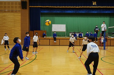 一年生は延期になっていたクラスマッチを行いました。種目はバレーボールです。10月にも体育の時間にバレーボール大会を行ったのですが,そのときから比べても格段に上達しており,白熱した試合がくりひろげられました。勝敗数は同じで,得失点差で勝敗を決することになりましたが,最後の試合で大逆転をして勝敗が決まるという内容で,学年の最後に良い思い出になったようです。次は,来週合唱コンクールがあるのでそこに向けて頑張っていきましょう。