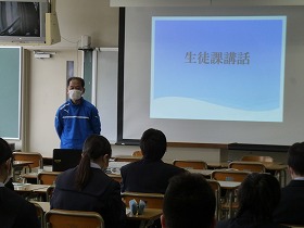 生徒課からは良い人間関係の構築に、あいさつ、時間厳守、身だしなみについての指導がありました。