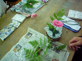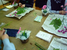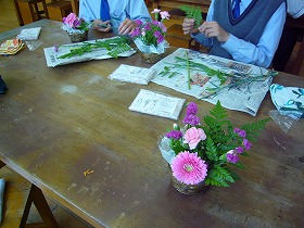 ほとんどの生徒が花を生けるのは初めてだったようですが、それぞれに個性のある素敵な