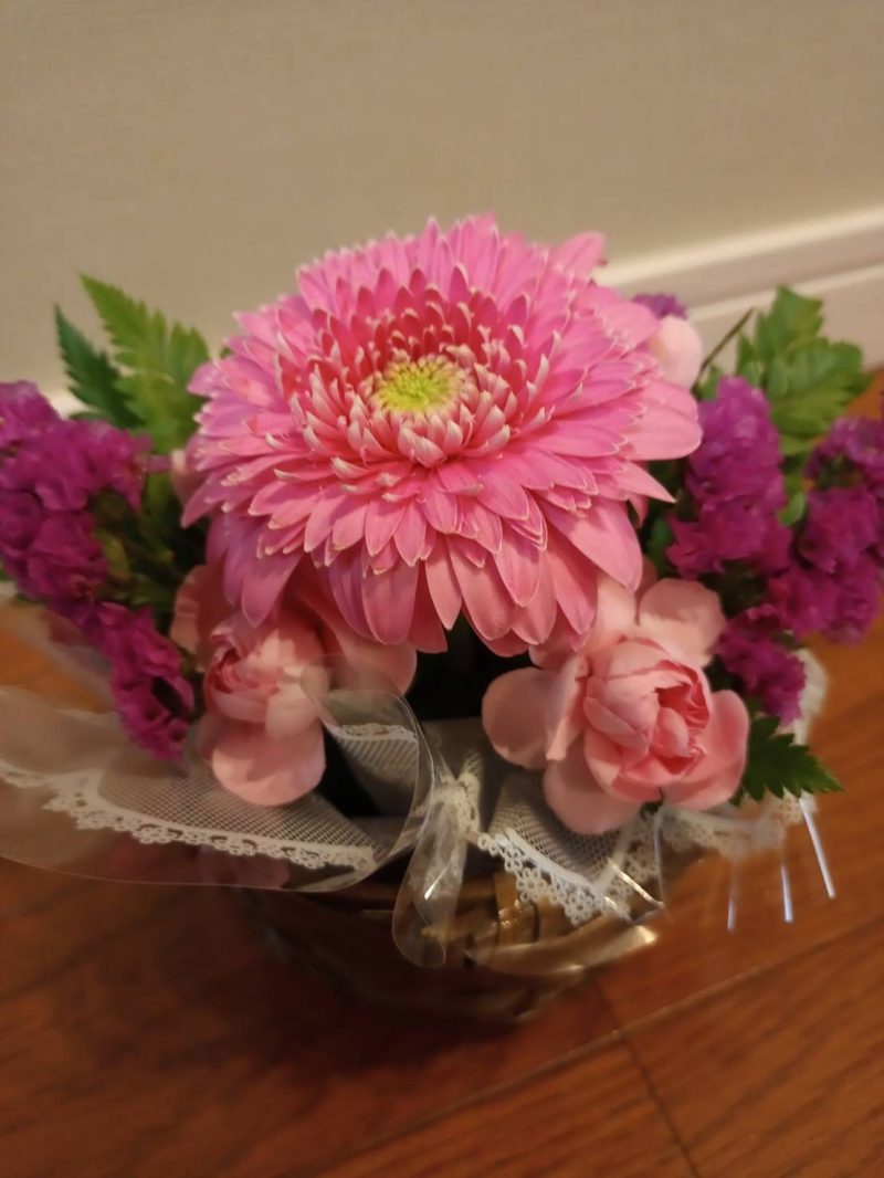 愛らしいピンク基調のお花により、飾った先はパッと華やかに。華道の授業後はお花を持ち帰らせていただける為、実は、家族にとって待ち遠しい楽しみな授業になっています♪