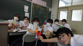 みんなで机を寄せ合ってワイワイ話しながら楽しそうに制作していました。