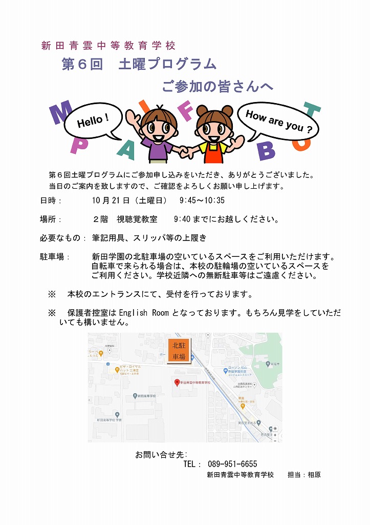 第6回 土曜プログラム開催について