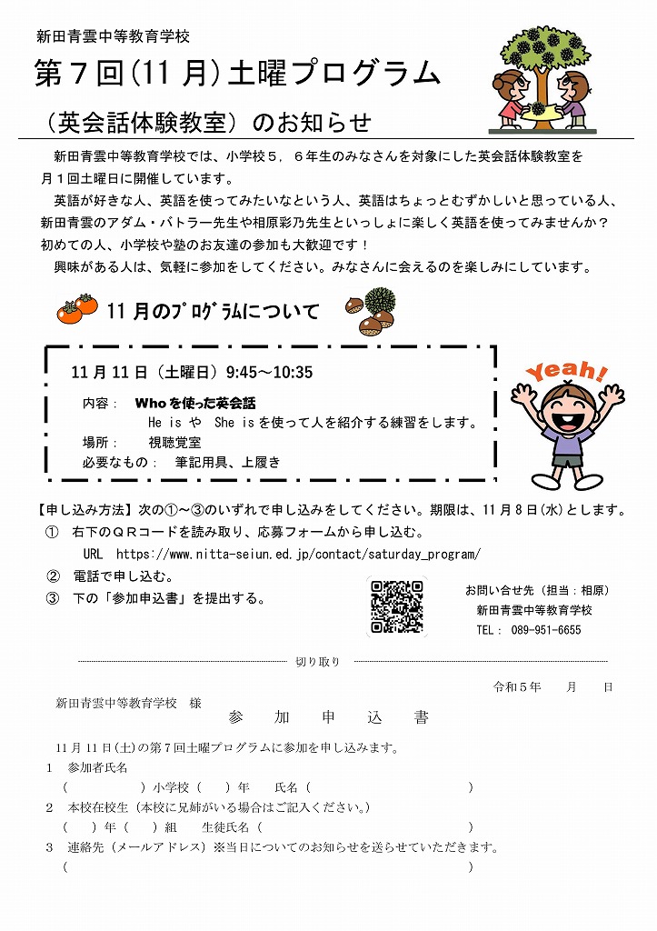 第7回 土曜プログラムのご案内