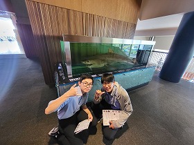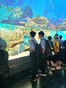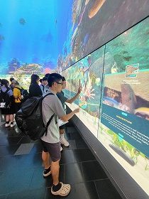 午前中はQUT大学を訪問し、大学生が大学内の施設について説明をしてくれたり、グレートバリアリーフの生物たちについて大型ディスプレイを使って学んだりしました。大学の建物は新しく、環境に配慮された作りになっていました。生徒たちは出発前に用意していた質問を一人最低1問は聞くことができていました。