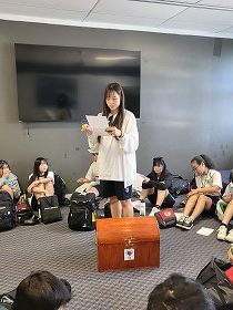 まず初めに、自分の思い出の品について発表し、一人ずつアイテムを宝箱に入れていきました。