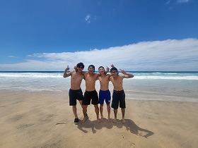 ゴールドコーストの海は波が高く、活動の途中、波によって全員の荷物がびしょびしょになってしまいました。