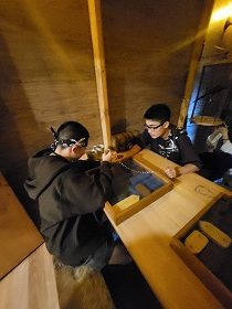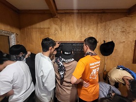 目隠しをして部屋の中に入ると、そこには鍵のかかった仕掛けがたくさんあり、みんなで協力しながら謎を解き、コインを集めていきました。