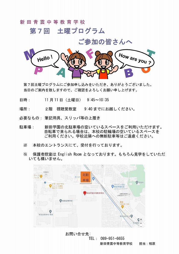 第7回 土曜プログラム開催について