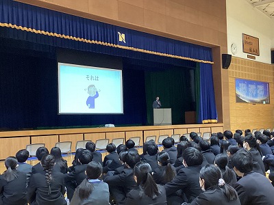 この2か月半で、ファットル君の日本語能力は飛躍的に上達し、全校生徒の前で故郷のイタリアの紹介をプレゼンテーションできるまでになりました。