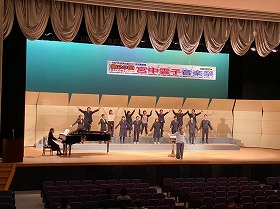 11月19日(日)、今年で23回目を数える「宮中雲子音楽祭」が西予市三瓶町にて開催されました。三瓶町出身の童謡詩人である宮中雲子さんの名を冠するこの音楽祭は、コロナ感染症の影響で実に4年ぶりの開催となり、青雲音楽部が待ちに待った再開でした。しかし、今回を最後に音楽祭の幕を閉じるとの知らせがあり、それならばと音楽部員だった卒業生が全国各地から集まってくれて、現役部員と一緒にステージで歌いました。