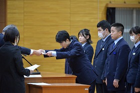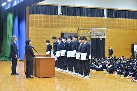 次に、先日行われました生徒会執行部役員選挙で選ばれた次期生徒会執行部役員の認証式が行われました。