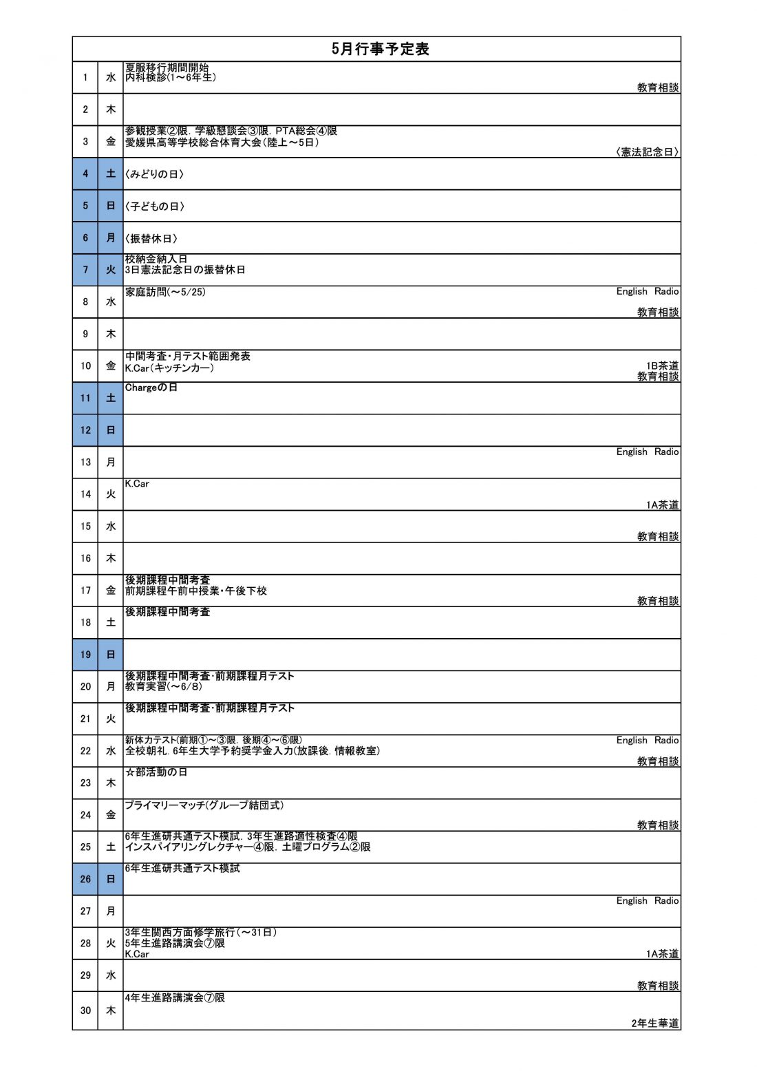 5月 行事予定表