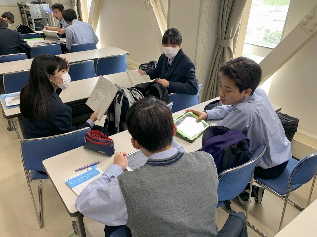グループで学部学科調べを行いながら、それぞれの担当でスライド作りも行いました。