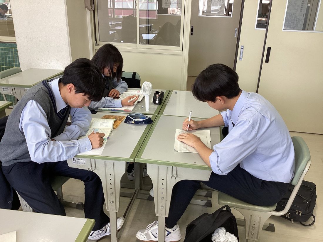 明日から始まる中間考査、そして受験勉強のため、放課後も残って熱心に学習する姿が見られます。友人の頑張っている姿に刺激を受け、よりいっそう前向きに取り組めるのではないかと思います。まずは中間考査で納得のいく結果を出し、受験勉強に弾みをつけてほしいと願っています。