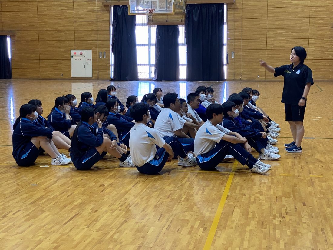 5月20日から6月8日までの3週間にわたって、新田青雲には卒業生が教育実習に来ていました。実習最終日の前日、保健体育の寺坂先生による研究授業が、4年生の授業で行われました。体育館でのバスケットボールの実技の授業は、実習の先生だけではなく生徒たちもなかなかの気合が入っていました。
