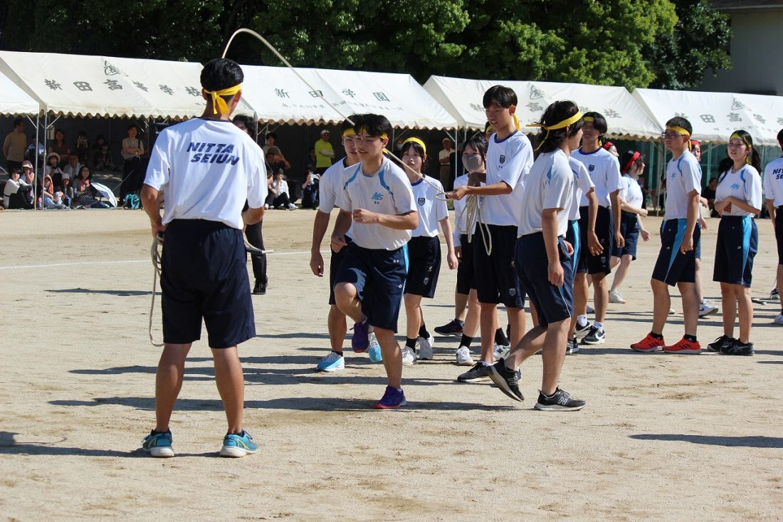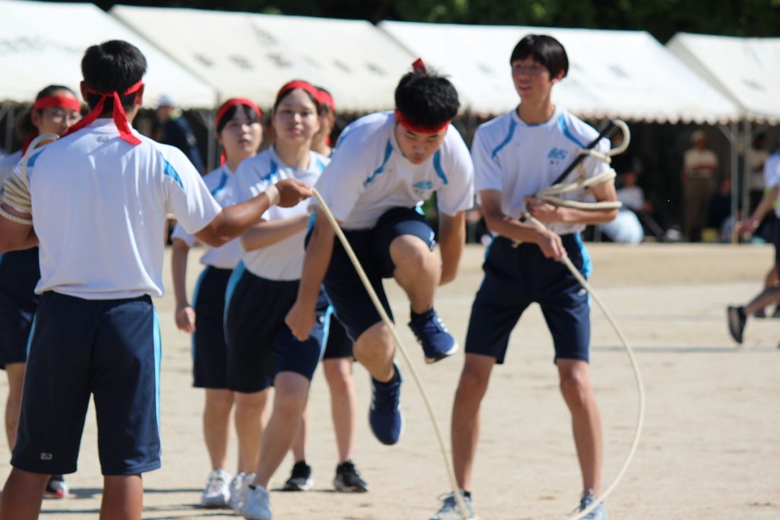 この日は前期課程生による全員リレーや後期課程生による青雲ジャンプ(8の字ジャンプ)、借り物探し、そして応援合戦に6年生のダンス、グループ対抗選抜リレーが行われました。
