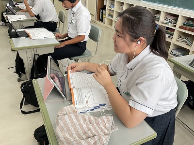 3年生では、二学期最初のOST(オンライン・スピーキング・トレーニング)がありました。最初は苦戦している様子でしたが、最近は英語を話すことにも慣れ、楽しいと思える生徒が増えてきたようです。Yesだけでなく、いろいろな表現を使う練習にもなっています。
