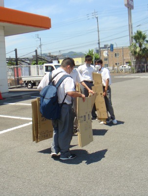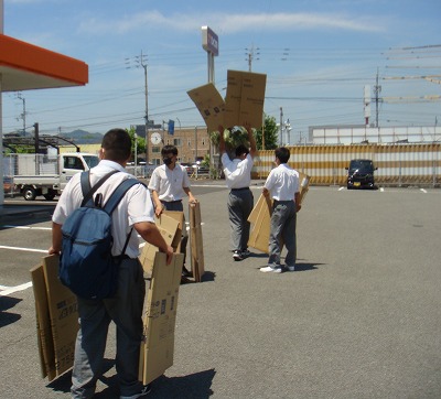 それから、迷路の壁をダンボールで作成するため、ダンボールをいただきに業者まで行きます。