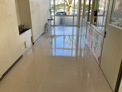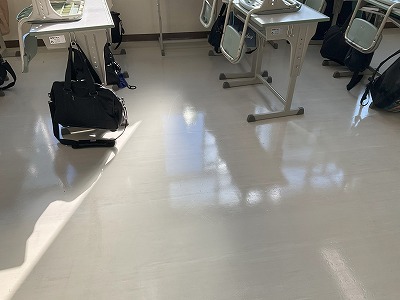 実は、この土日に、床のワックス掛けがされていて、廊下と教室の床にピカピカに!