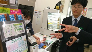 新田学園にファミリーマートができ、生徒たちも楽しく買い物をしています。