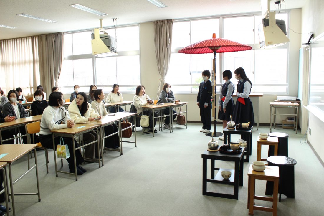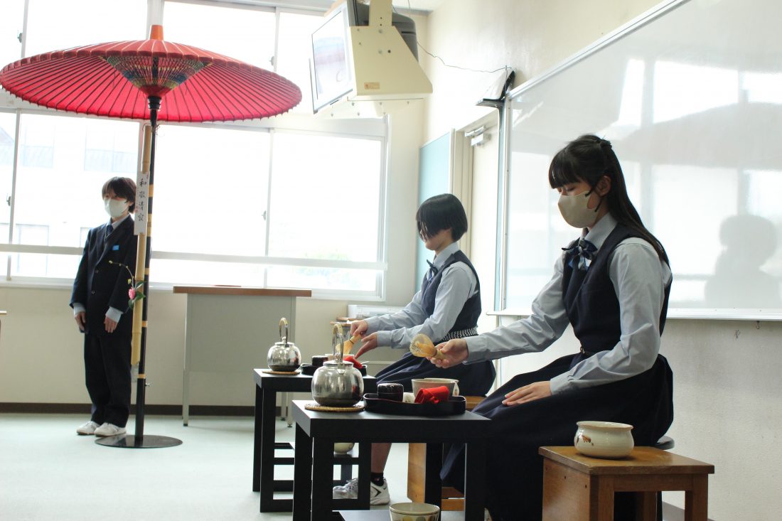 並行して1年生の茶道発表会と、2年生の華道の作品展示が行われました。