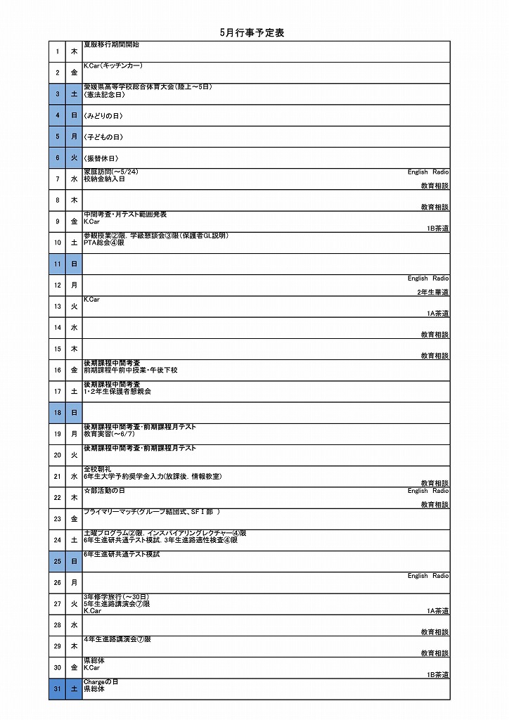5月の行事予定
