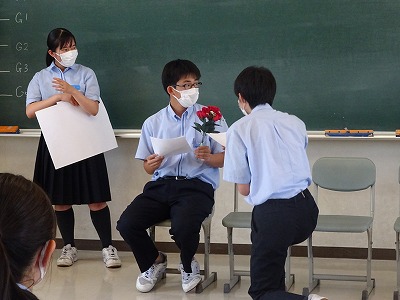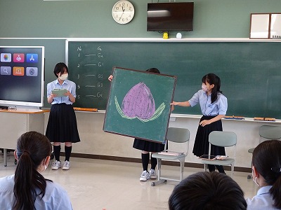 この日の5年GL組は、保健の授業でイマ―ジョン教育を行いました。「結婚生活と健康」という単元の学習の導入として、グループ毎に英語でロールプレイングをしました。名付けて「プロポーズ大作戦!」。プロポーズの場面を自分たちで考えて発表をしたのですが、サザエさんがマスオさんにプロポーズをしたり、桃太郎とかぐや姫が恋に落ちたりと、オリジナルの台本を作り、BGMや小道具も使って楽しく行われていました。先生方からは、より自然な英語表現をアドバイスしていただいたので、しっかり覚えて使えるようにしていきたいですね!