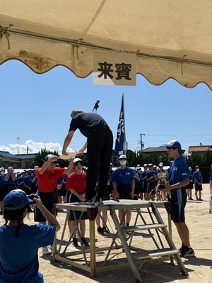 応援合戦は各グループの応援歌を歌い、先輩達から受け継いだ踊りにアレンジを加え踊ります。力強い太鼓の音に合わせ声を出して踊る姿は圧巻で盛り上がりました。