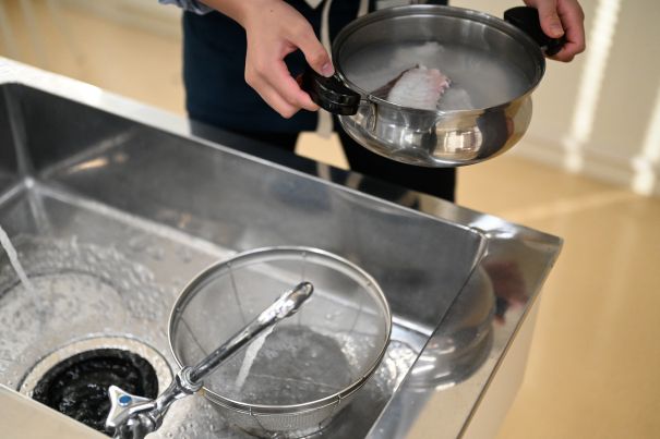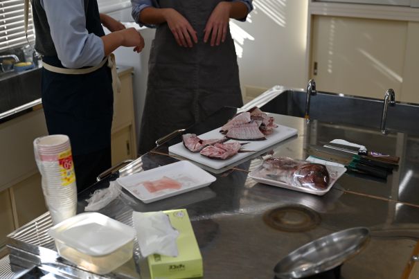 あるグループは、食品ロスの削減を目指して、愛媛のマダイのアラ料理を作っていました。アラからだしをとってラーメンのスープにしたり、アラからとれる身を使ったたいそぼろを作ったりしていました。