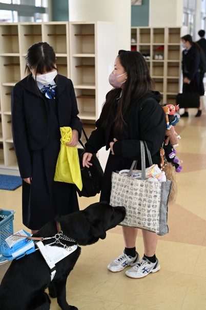 そのため、盲導犬のワンちゃんも一緒に来校してくれました。