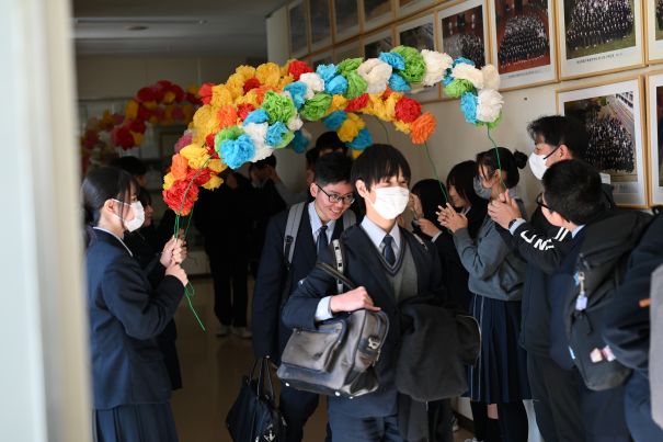 下校時には、生徒会を中心に後輩たちがエントランスまで見送りに来てくれました。