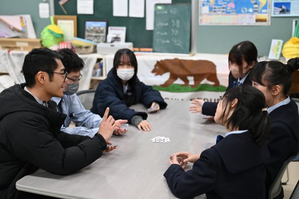 英会話部は、英語使用限定でトランプゲームをしていました。