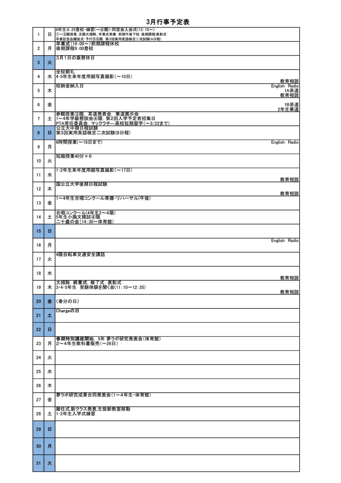3月の行事予定