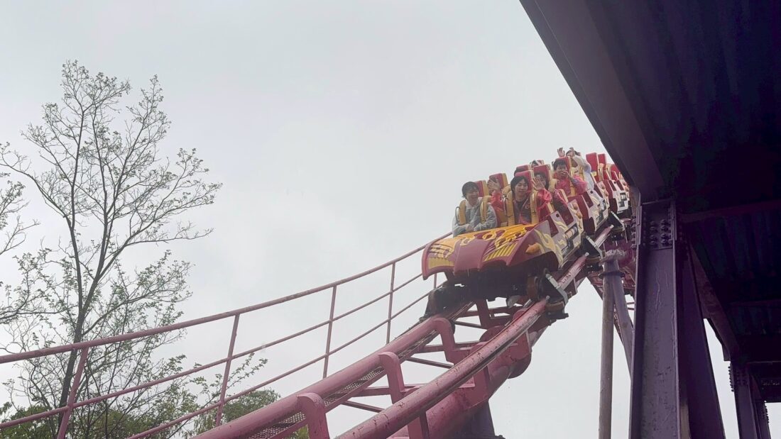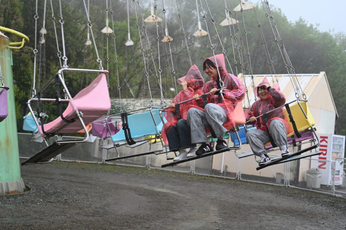 カッパ姿でたくさんの乗り物にチャレンジしていました。