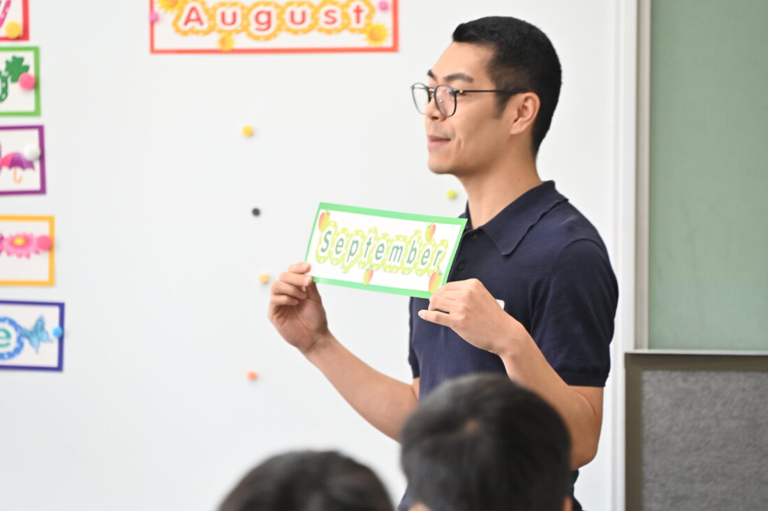 今回の土曜プログラムでは、自己紹介の仕方や、「色の名前」「月や曜日を表す言葉」などを中心に楽しく英語を学ぶことができました。